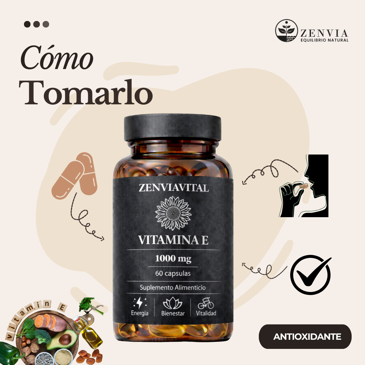 Vitamina E es un suplemento alimenticio funcional en cápsulas, reconocido por su aporte antioxidante y su papel dentro de rutinas de bienestar enfocadas en el cuidado celular. Su consumo acompaña hábitos saludables orientados al equilibrio del organismo y la protección frente al estrés oxidativo diario.